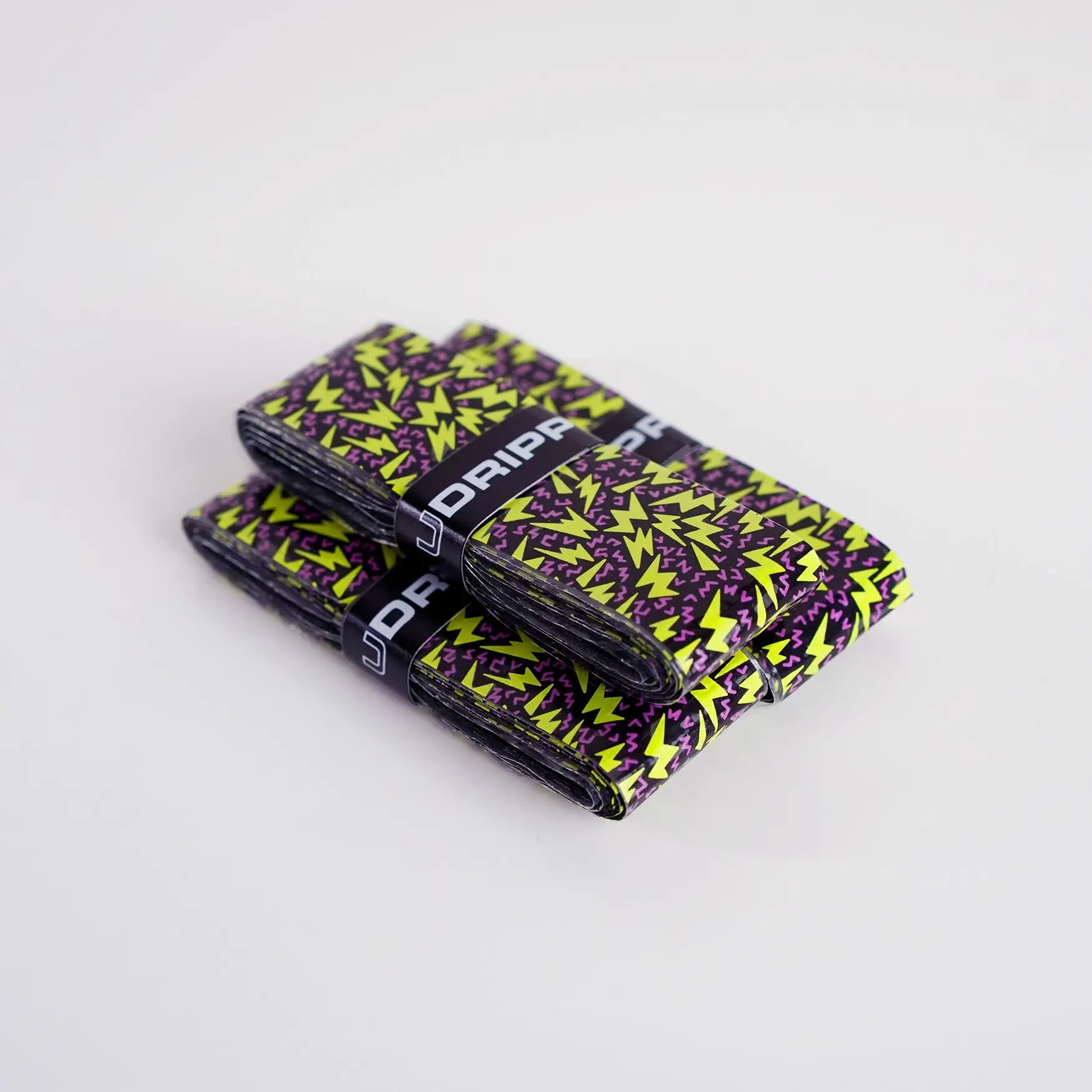 Custom Over Grips with an 80s style lightning bolt print.